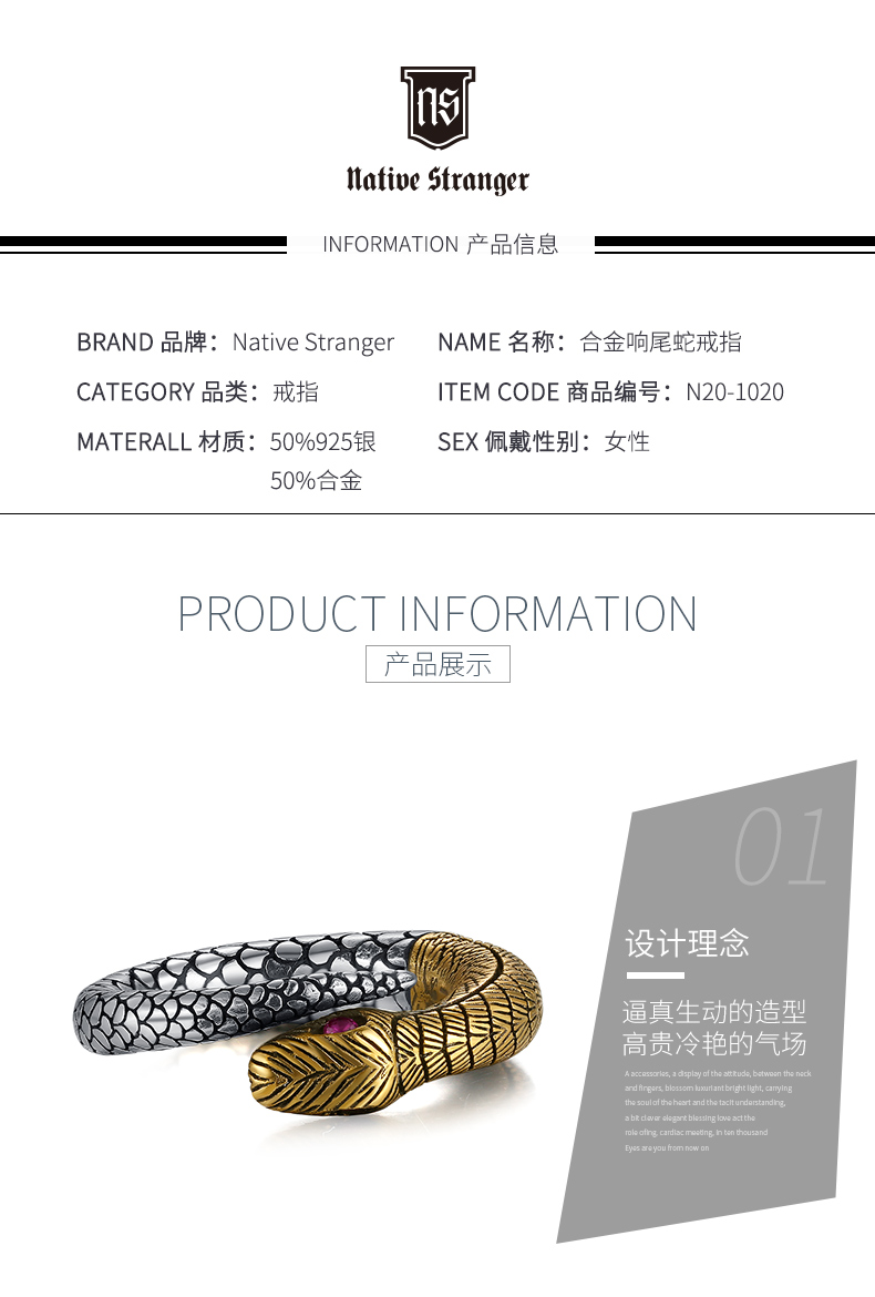 合金衔尾蛇戒指
