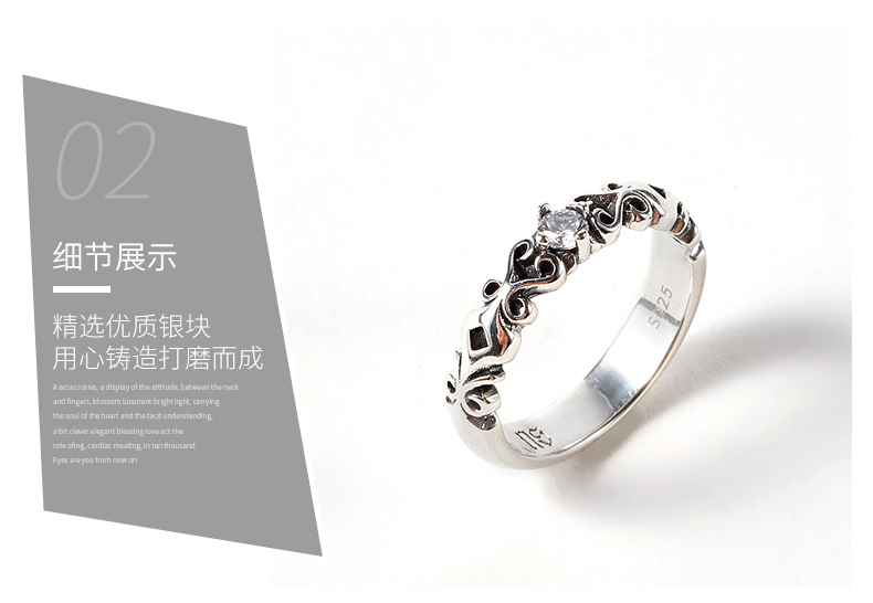 复古锆石雕刻细戒指