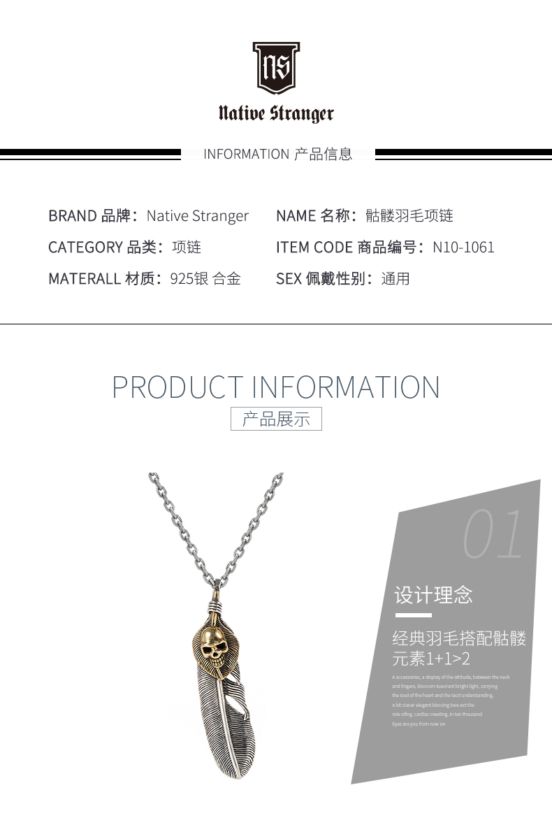 骷髅羽毛吊坠