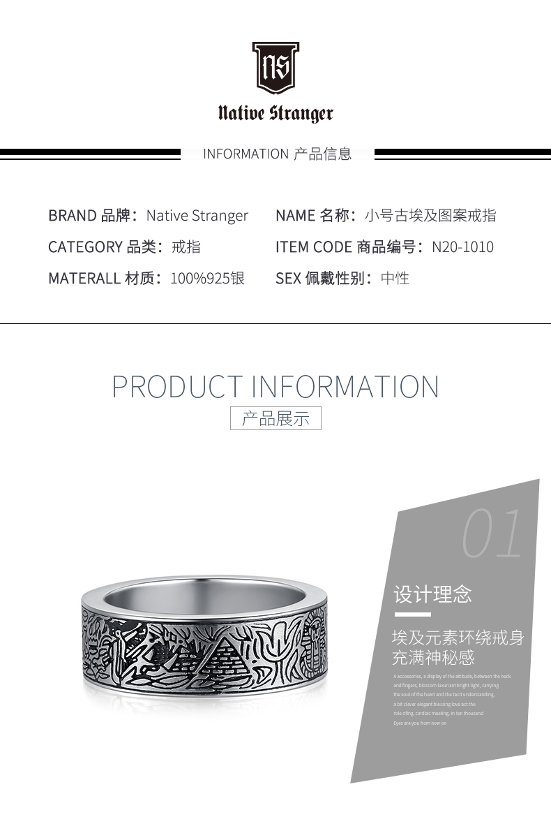 小号古埃及图案戒指